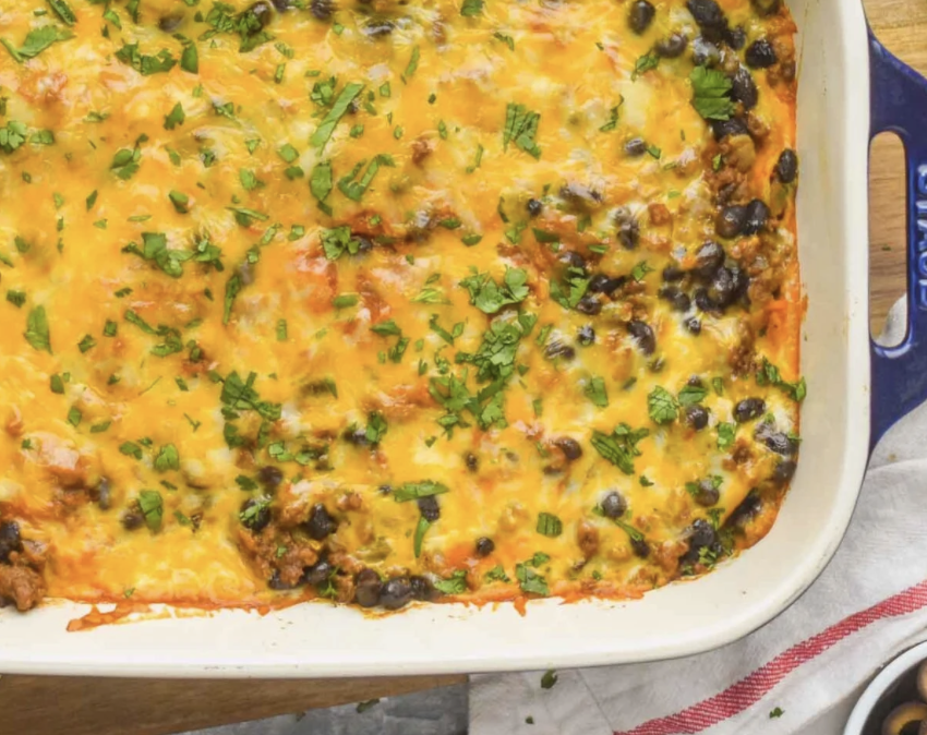 All the bold, comforting flavors of classic enchiladas, made simple. This layered bake features seasoned ground beef, soft corn tortillas, zesty enchilada sauce, and plenty of melted cheese in every bite.