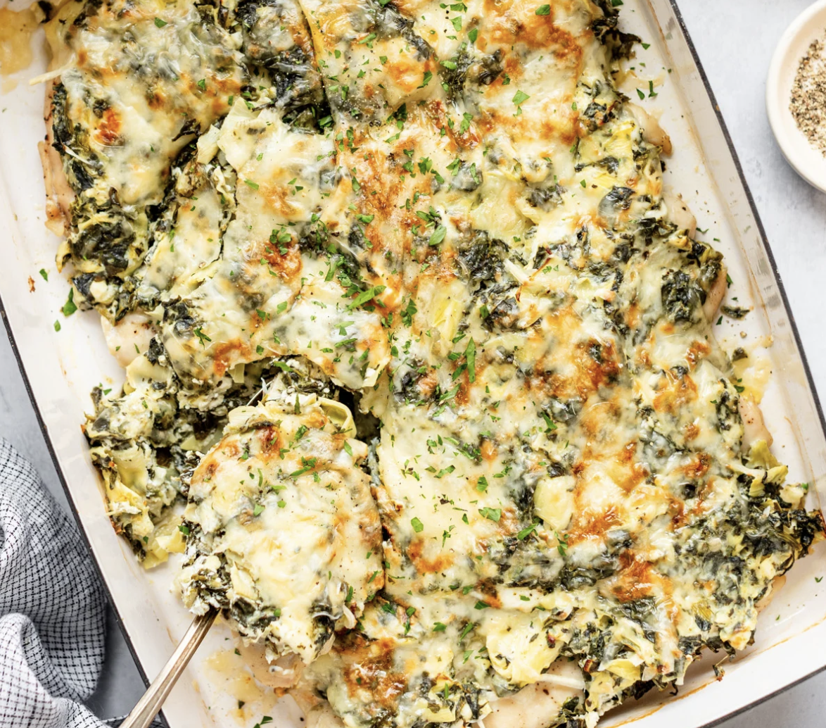 Creamy, cheesy, and loaded with flavor, this comforting casserole takes everything you love about spinach artichoke dip and turns it into a satisfying meal. Tender, seasoned chicken is baked in a rich, creamy spinach and artichoke sauce, layered with melty cheese that comes together perfectly in the oven.